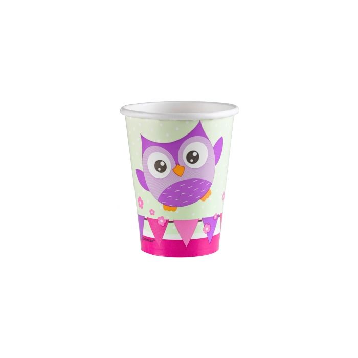 Voici un lot de 8 gobelets chouette en carton de 27 cl à prix discount !
