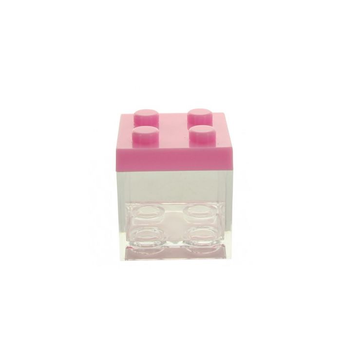 Contenant dragées plexi cube type Lego couleur rose - 5 cm x 5 cm x 5 cm.