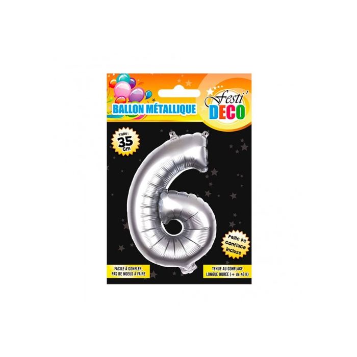 Ballon métallique argent chiffre 6 - 35 cm