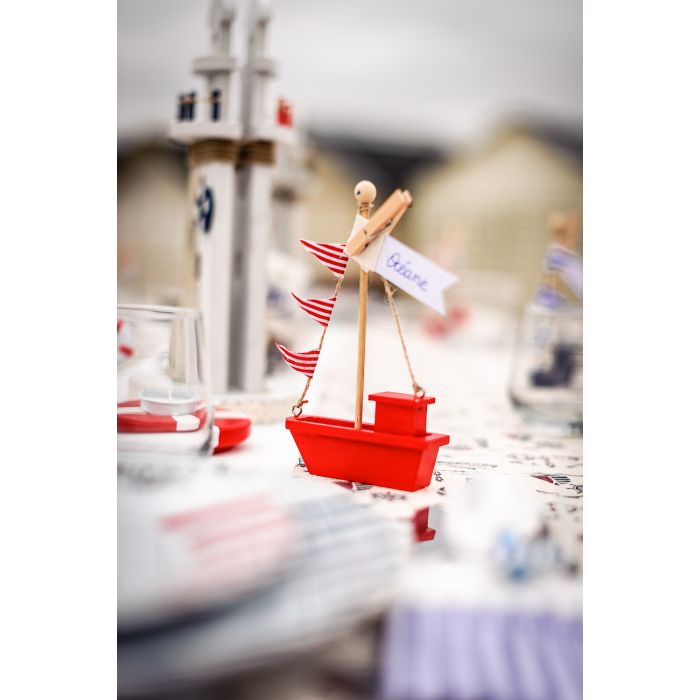 A l'aide d'une étiquette, ce bateau vous servira de porte-nom afin que chaque invité puisse trouver aisément sa place autour de la table.