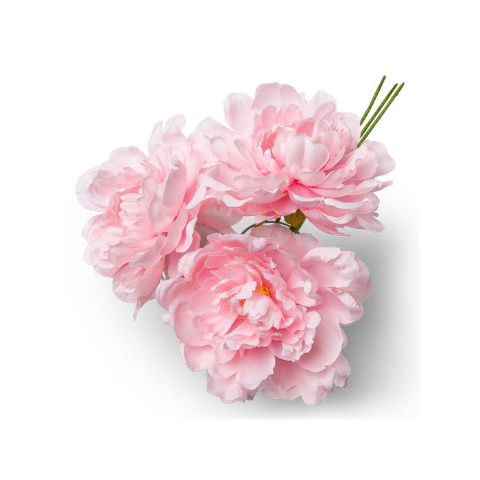 Bouquet de fleurs tissu roses - 3 pivoines 12 cm et tige 30 cm