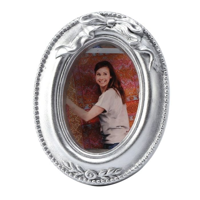 Cadre ovale argent, de 5,5 x 7 cm, en résine. Super pour exposer ses photos préférées.