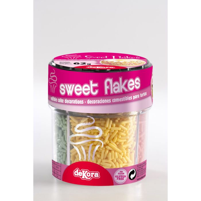 Confettis multicolores en sucre, de couleur rose, vert, jaune et rouge, pot distributeur de 62 grammes. Un bon plan pour sublimer vos cup-cakes et gâteaux à moindre coût !
