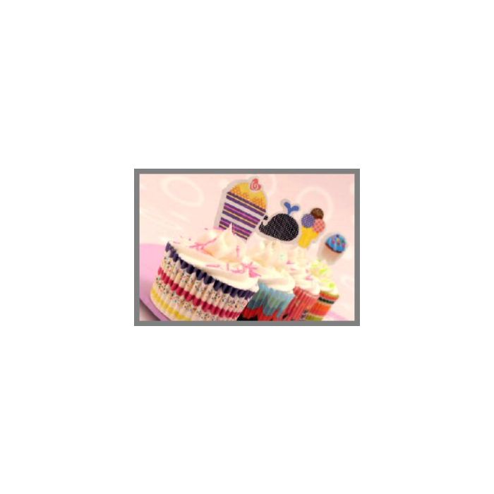 Kit deco pour cupcakes - collection Doux moments - Ø8 x H3,5 Pick H8 - 24 piques et 24 caissettes