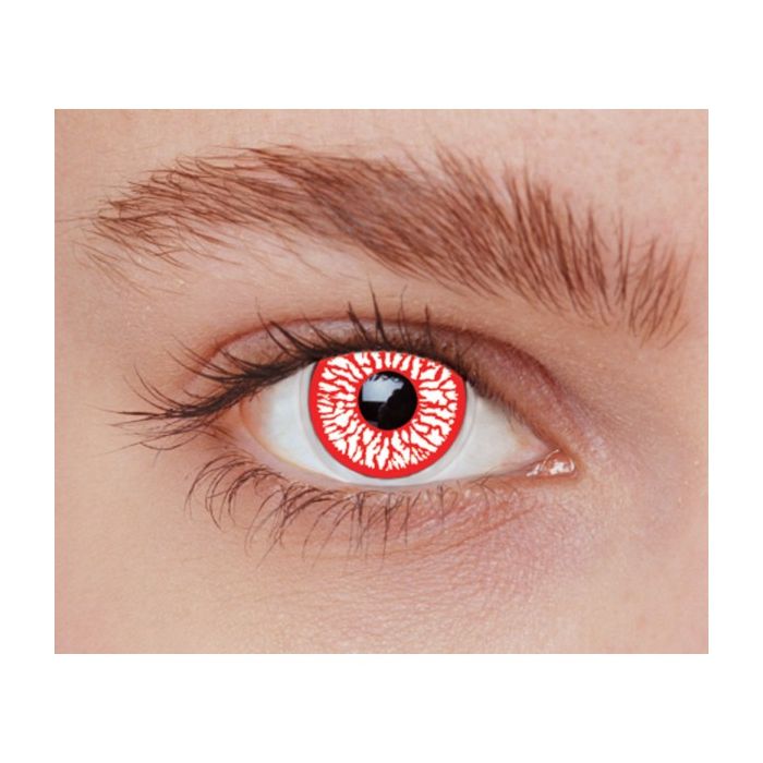 Ici, il s'agit de lentille halloween injecté de sang. Ces lentilles injecté de sang raviront tous ceux qui veulent un déguisement effrayant pour Halloween. Elles sont de couleur blanche avec des motifs couleur rouges, pour donner l'effet d'yeux en sang.