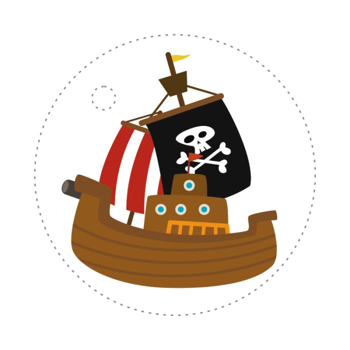 Pour embellir ses ronds de serviette, ses pochettes à friandise ou sa déco de table, voici un lot de 25 étiquettes rondes illustrant un bateau pirate. C’est parfait pour l’anniversaire pirate de votre enfant !