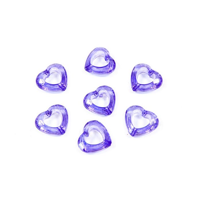 Lot de 20 cœurs en matière plastique de couleur prune, dimensions 1,9 x 1,7 cm.